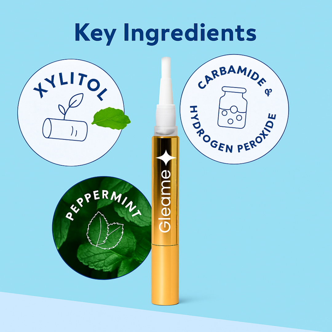 Unlike most pens that use only one active ingredient, Gleame™ combines Hydrogen and Carbamide Peroxide—the same dual-action blend used in dental offices for faster, deeper whitening.